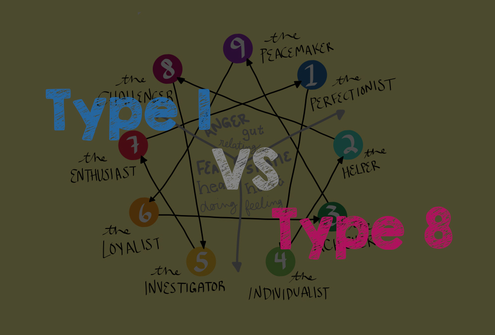 1 號和 8 號都屬生氣類型,都是一根筋的思維模式,而且都認為自己是對的。在交往初期,1 號被 8 號的力量與美貌催眠,8 號讓1 號感到自由,而 8 號則被 1 號的原則性與好意所吸引。1 號的道德標準和立場正是不守規矩的 8 號所缺失的。