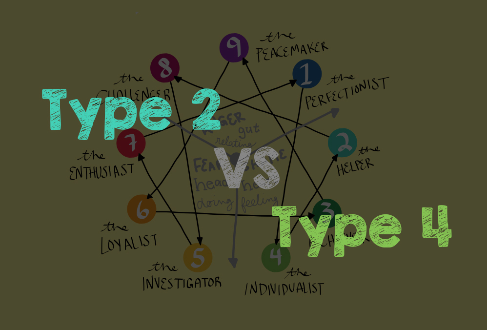 4號對追求他人而感到疲憊,他們覺得滿足他人的需求,是對自我的剝削。他們很佩服2號吸引他人的能力,但他們並不欣賞2號對他人的恭維和調情,覺得這是膚淺的情感。如果4號拒絕了2號傳來的秋波,2號會繼續追求,他們喜歡接受有難度的情感挑戰。2號的力量來自於追求。但是如果4號真的回心轉意,2號又會被嚇跑。