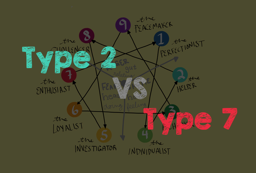 7號的迷人和2號的誘惑讓他們成為引人注目的情侶。7號習慣以自我為中心,不管伴侶是否在身邊,他們都會隨心所欲。聰明的2號也會表現出他們多樣的自我,來響應7號的號召,而不會靜靜地在家裡等待。兩個人可以在一起嘗試各種活動,這讓他們總是有新鮮的東西可以分享。只要有足夠的自由,7號也願意對情感做出承諾。這兩種人天生具有引誘性。雙方都喜歡考慮對方的潛在用處。相互的承諾會讓他們的感情更穩定。但是,雙方都害怕長時間的接觸。7號會覺得受到了限制,而2號則害怕暴露真實的自己。7號選擇逃跑,去尋找其他快樂。2號感到這是對他們的挑戰,會去追逐7號。2號想要得到更多關注,這大大超過了7號能夠給予的。