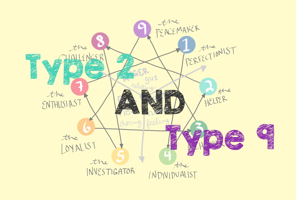 2號和9號都會說,自己己經融入到對方的生活中,能夠感知對方的情緒,能夠滿足對方的需要。儘管這兩種類型的人都會在情感上與對方融合,但是他們的動機並不一樣。9號想要找到一個生活的理由,這個理由常常會在伴侶身上發現;2號則想從伴侶身上找到自我。